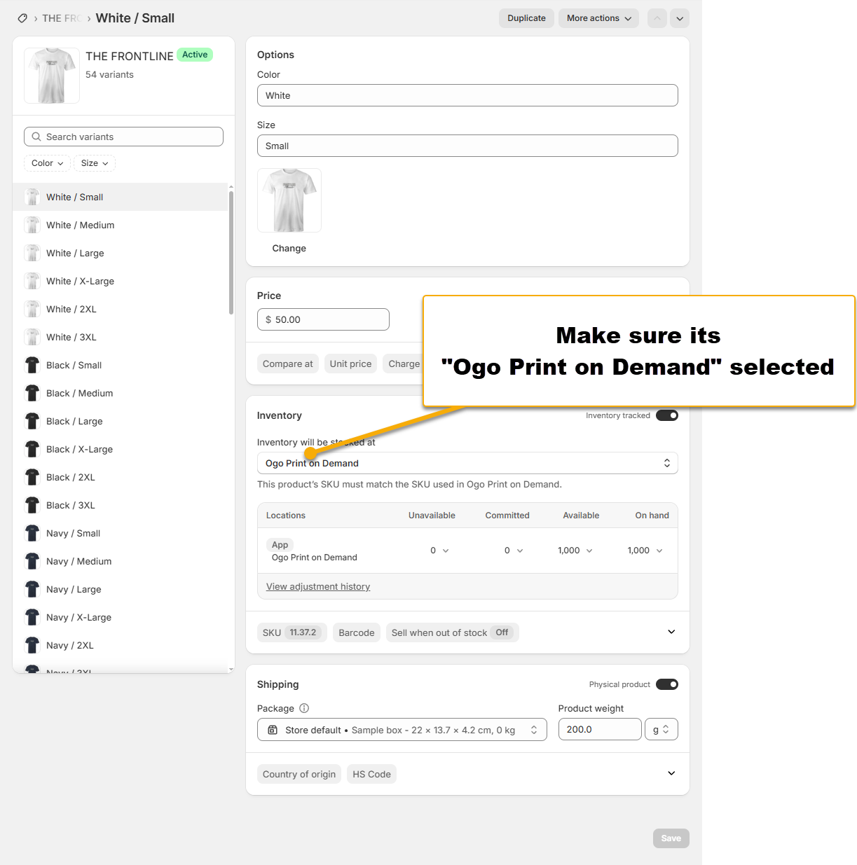 2. Make sure the variants themselves are showing 'OGO' as the location